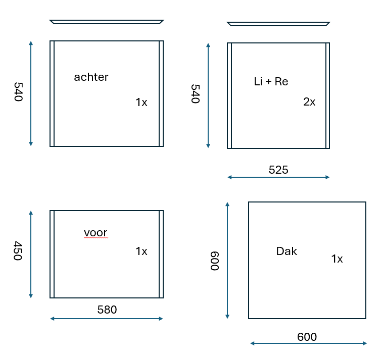 - 2.5 Pirplaten per kast met afmetingen (lengte x breedte x dikte): 1200 x 600 x 20 mm