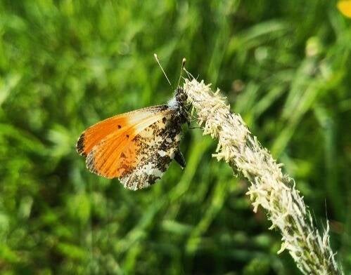 Het oranjetipje is een opvallende voorjaarsvlinder die vooral in april en mei te zien is. Mannetjes zijn herkenbaar aan de feloranje vlekken op hun witte voorvleugels, terwijl vrouwtjes deze kleur missen en volledig wit zijn. De onderzijde van de vleugels is subtiel gemarmerd in groen en wit, wat uitstekende camouflage biedt.