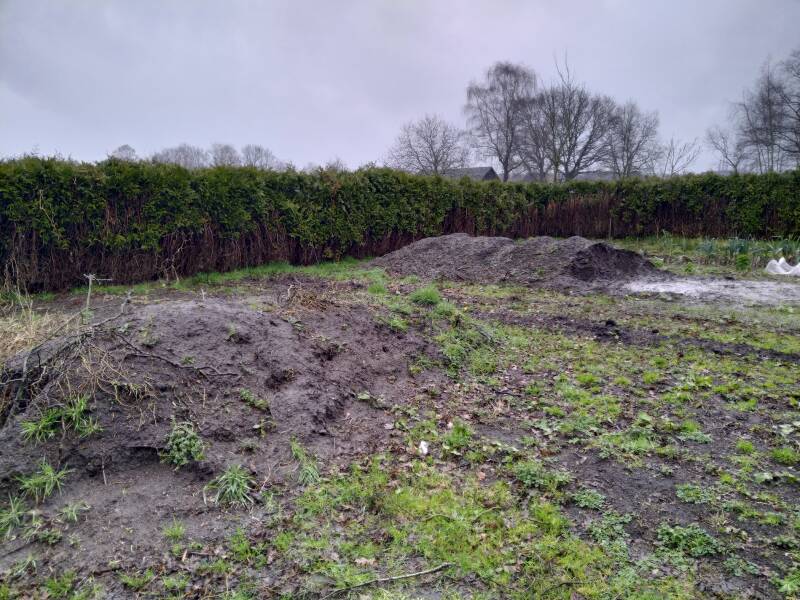 Het wordt langzaam aan tijd om met het nieuwe seizoen te beginnen. De teeltplannen zijn al in december opgesteld en het zaad hiervoor is aangeschaft. Nu moet alleen nog het weer een beetje gaan meewerken want de bodem kan met al die nattigheid niet bewerkt worden. Daarbij moet ook nog eens 8 m3 zand verdeelt worden dat vrijgekomen is bij het plaatsen van het tuinhuis.